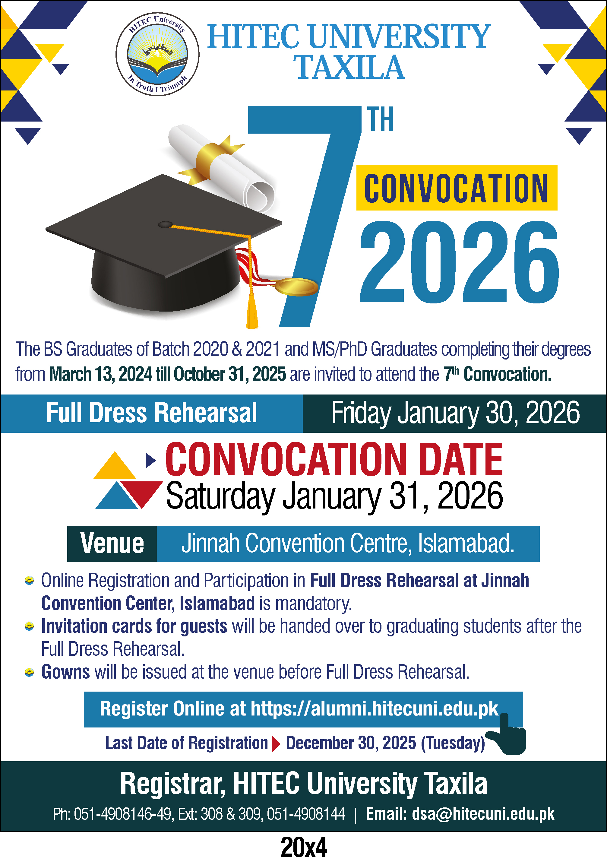 • Login to the HITEC University Convocation Portal by using credentials provided during the Registration process.
